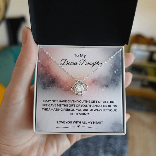 To My Bonus Daughter | I Love You With All My Heart | Love Knot Necklace