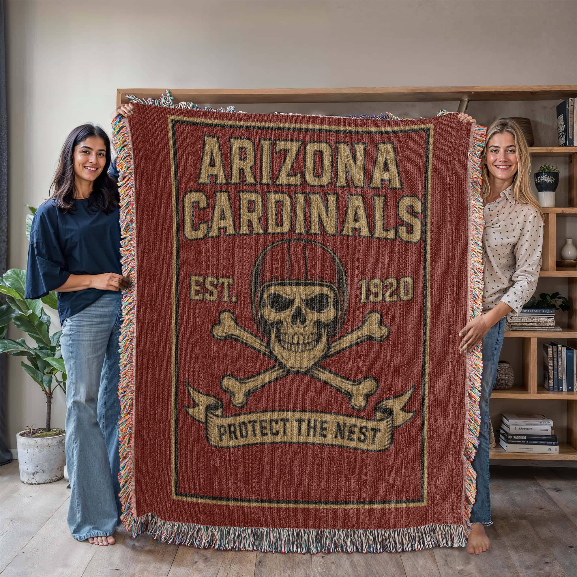 Arizona Cardinals Woven Blanket – “Protect The Nest” Vintage Skull Design