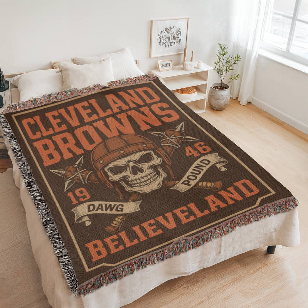Cleveland Browns Woven Blanket | Dawg Pound Skull Football Throw | Believeland Edition