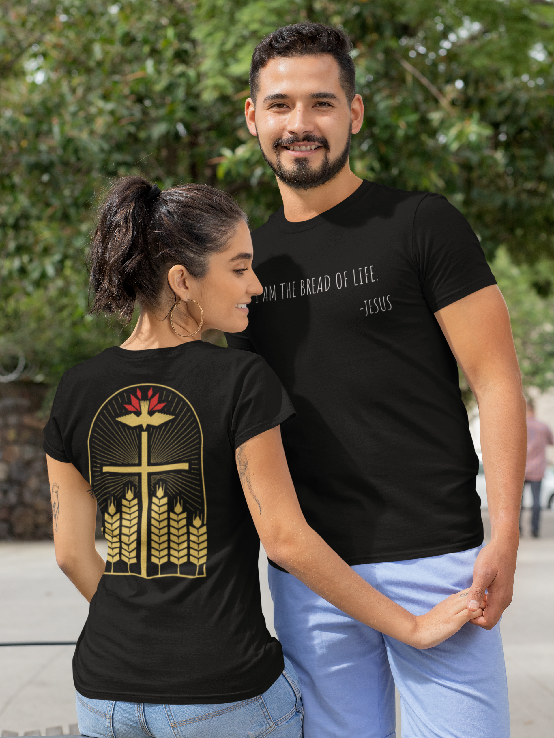 Jesus said, “I am the bread of life.” This shirt is more than apparel—it’s a declaration of faith, trust, and spiritual nourishment that never runs dry.