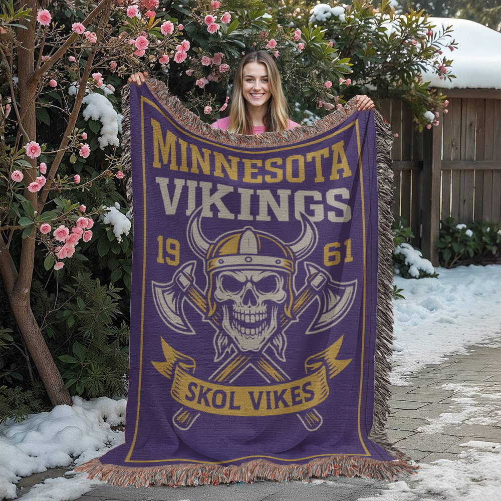 Minnesota Vikings Woven Blanket | Skol Vikes Viking Skull Throw | Football Fan Gift