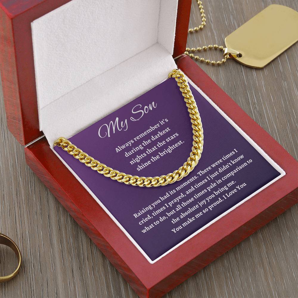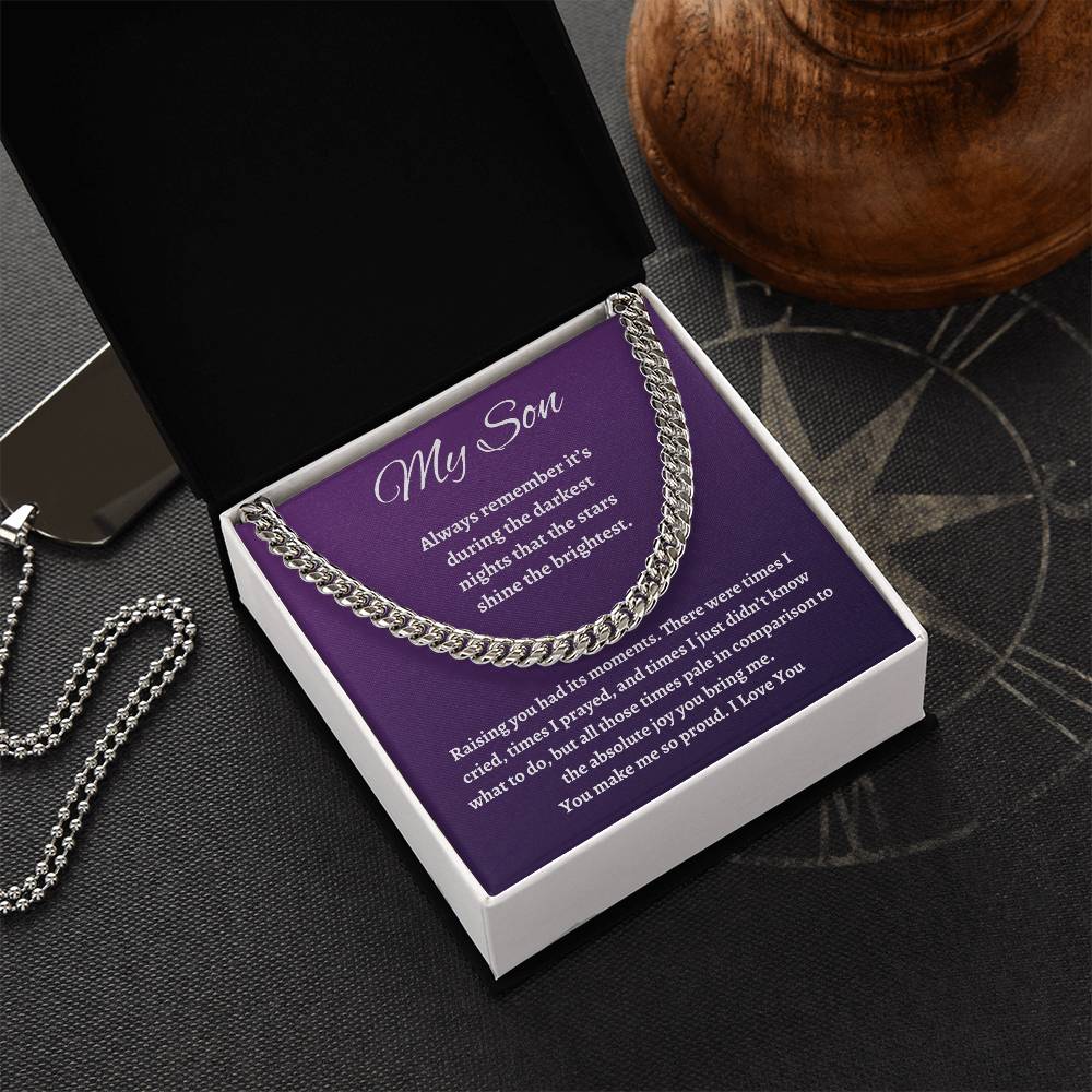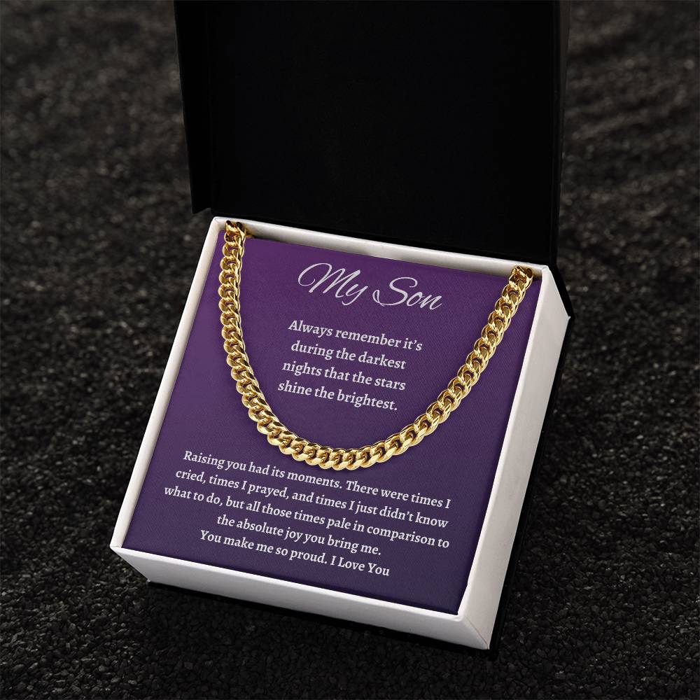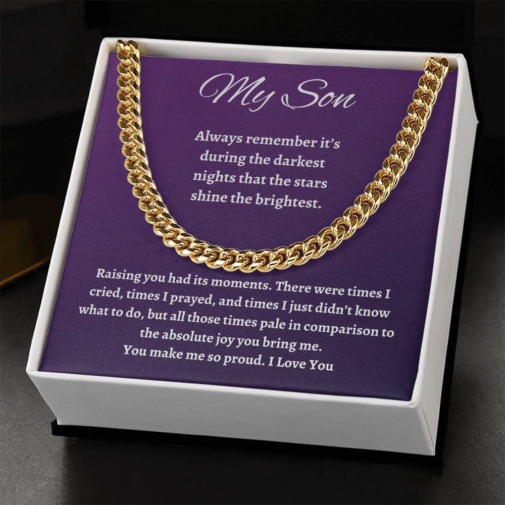 Always Remember it's during the darkest nights that the stars shine the brightest. Raising you had its moments, There were times I cried, times I prayed, and times I just didn't know what to do, but all those times pale in comparison to the absolute joy you bring me. You make me so proud. I Love You.