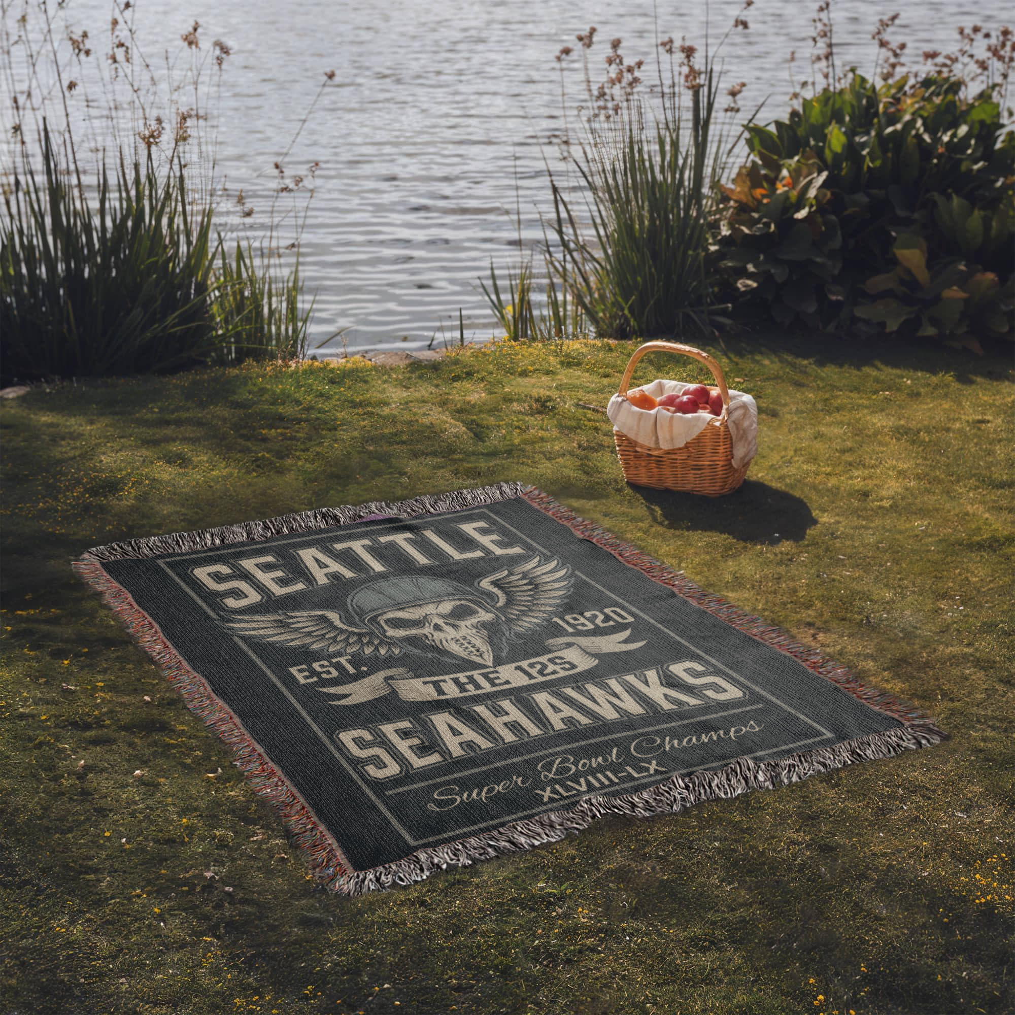 This is a true woven tapestry blanket—not printed—giving it a textured, premium feel that looks incredible in any fan cave, bedroom, living room, or tailgate setup. Whether you're keeping warm at Lumen Field or watching from home, this design delivers both comfort and attitude.