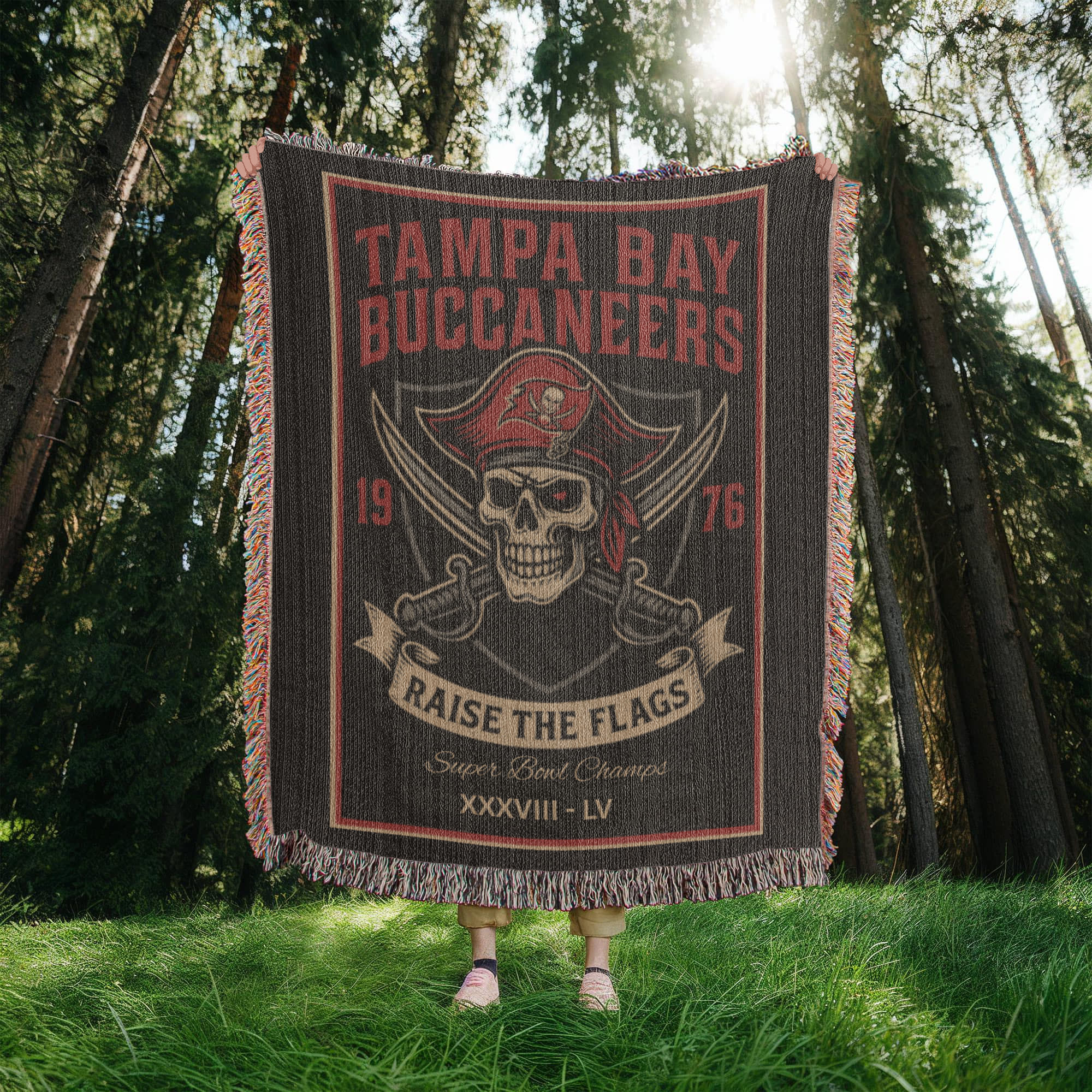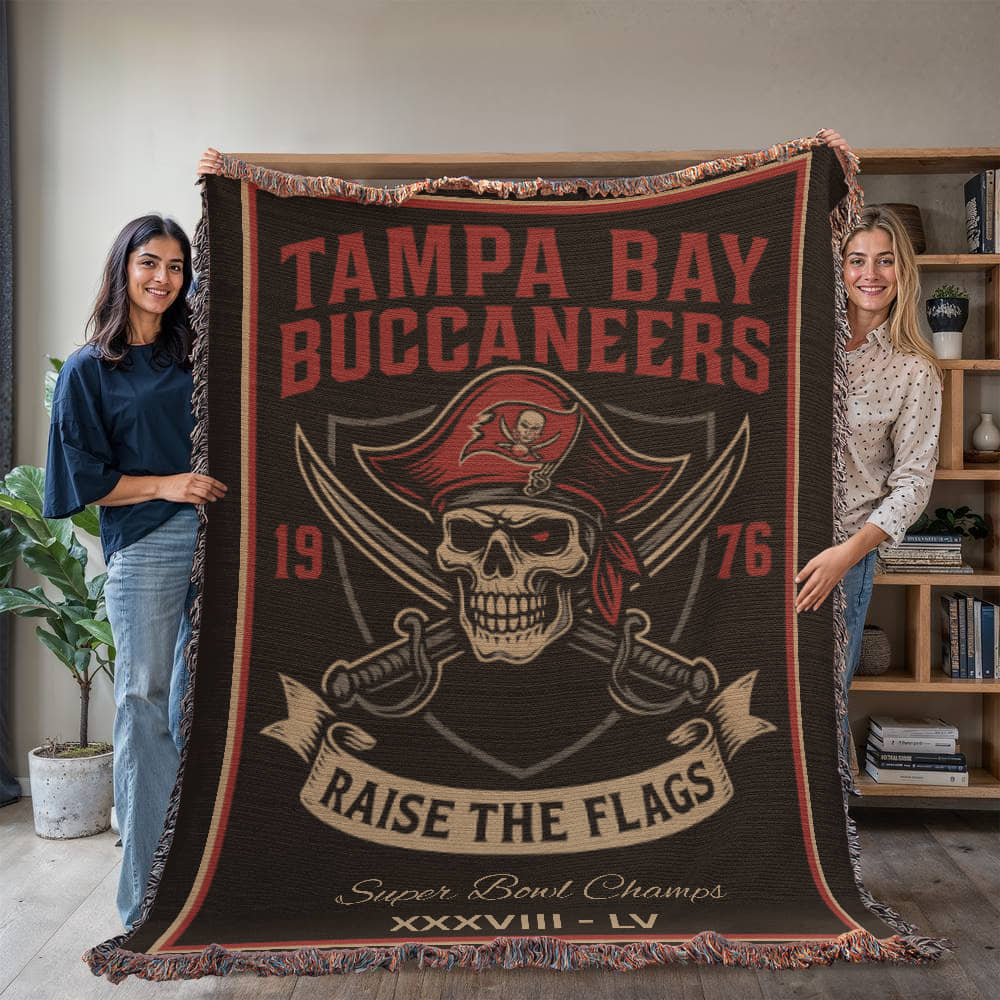 Tampa Bay Buccaneers Woven Blanket – “Raise the Flags” Vintage Pirate Skull (1976)