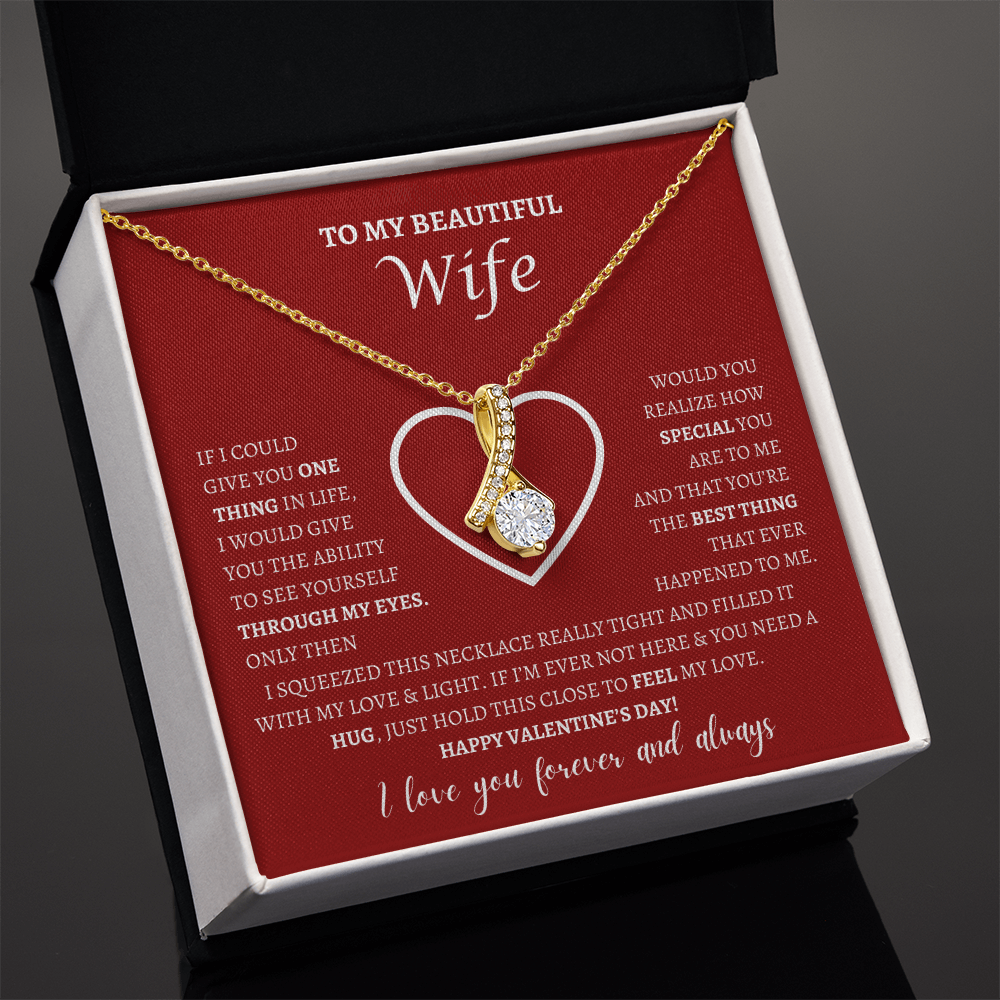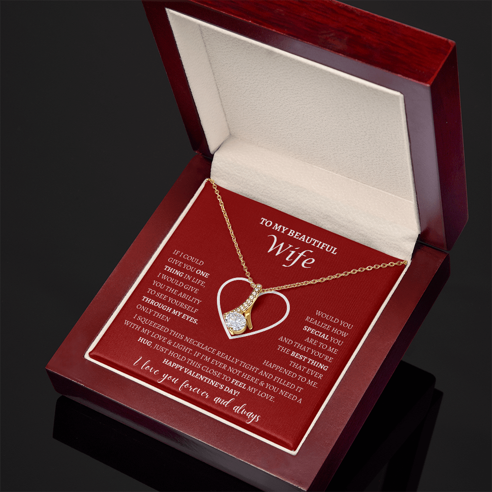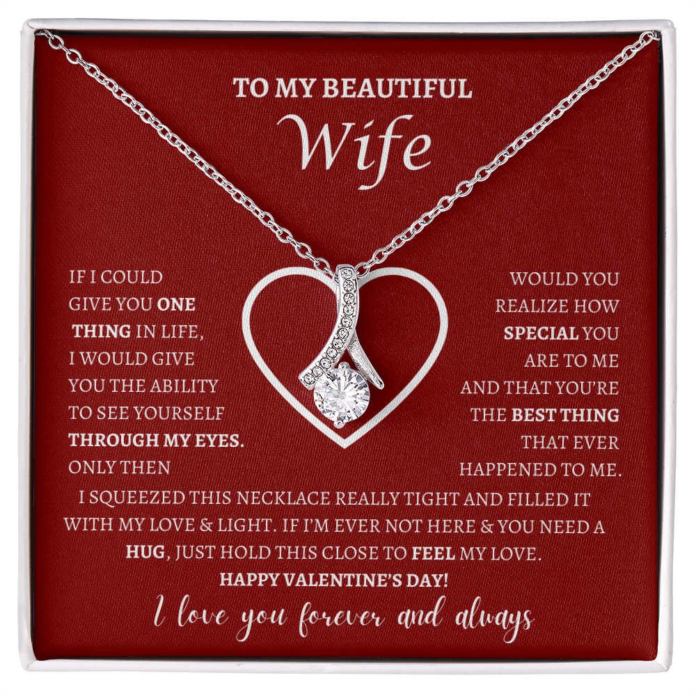 Imagine her reaction when she opens this stunning gift! The Alluring Beauty necklace features a petite ribbon shaped pendant that is sure to dazzle your special someone. Whether it's a birthday or anniversary, make sure to get her a gift she will love for years to come.